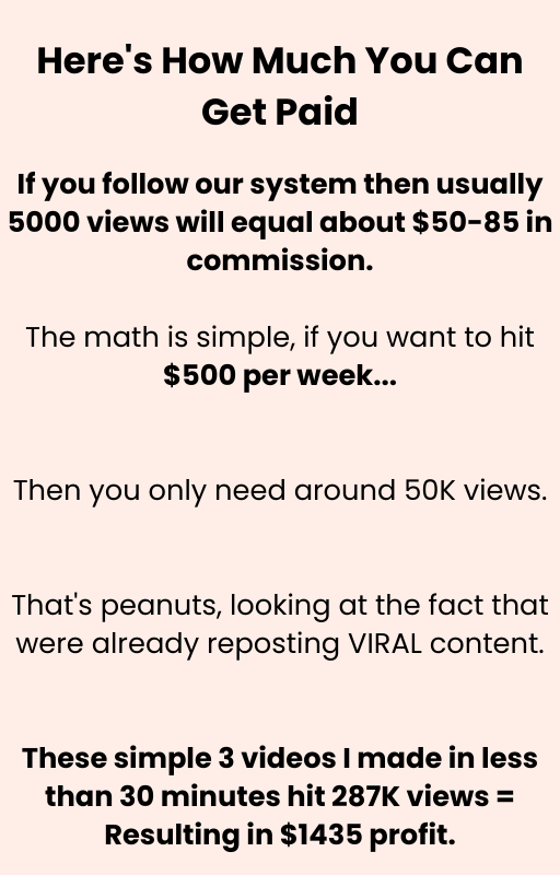 If you follow our system then usually 5000 views will equal about $50-85 in commission.