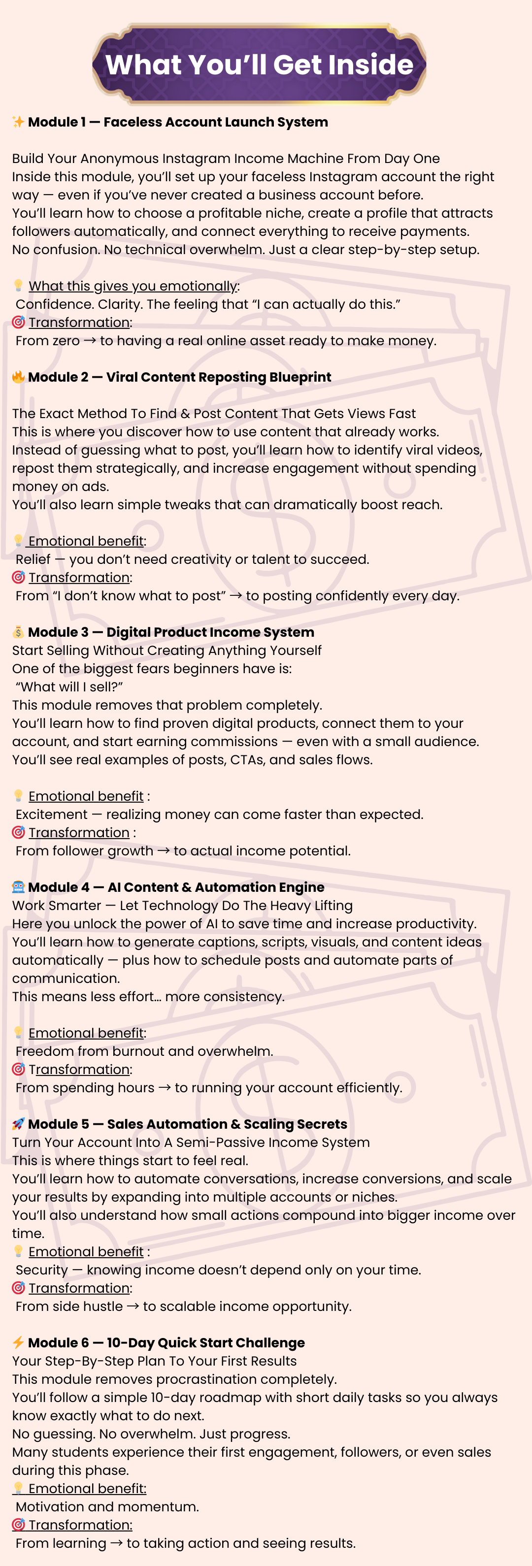You’ll see real examples of posts, CTAs, and sales flows.